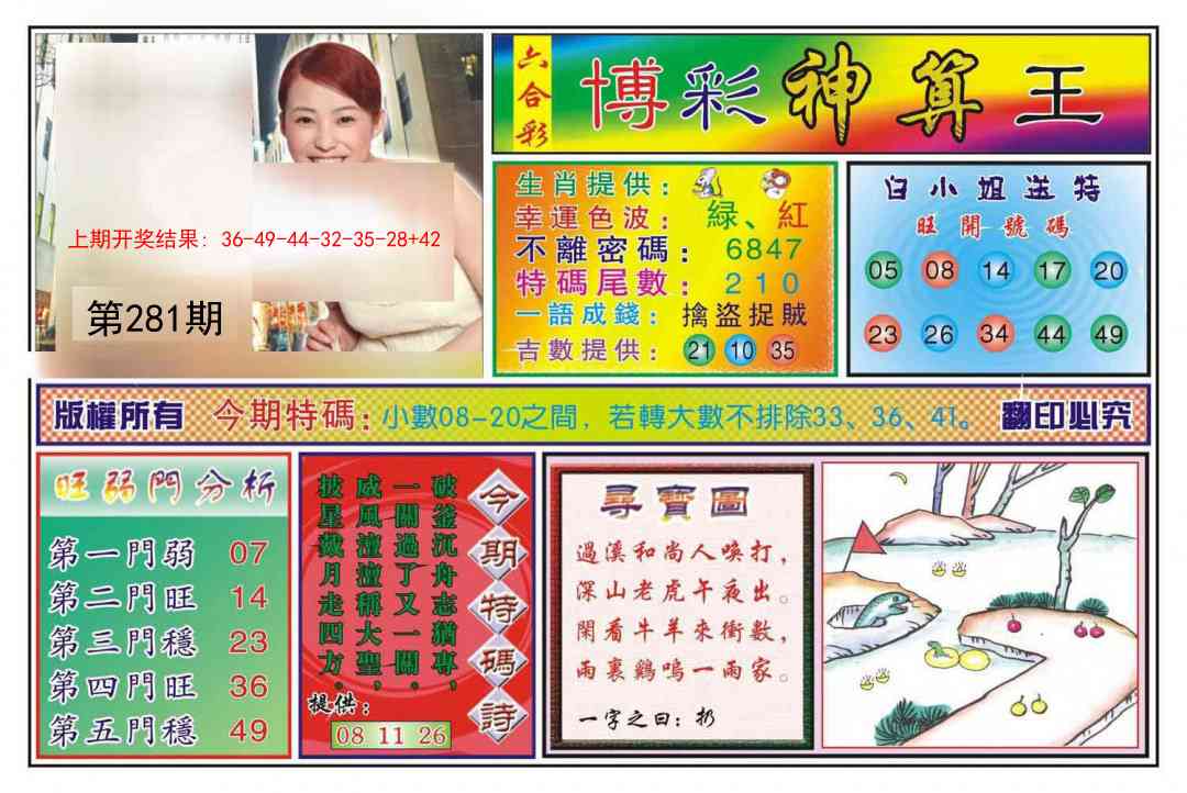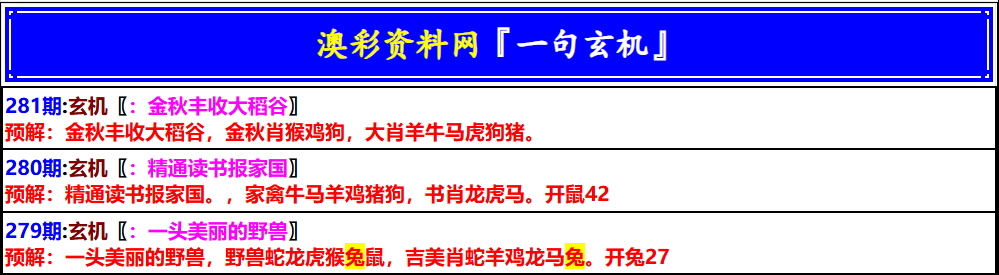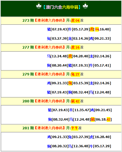 281期:五肖[马龙牛狗蛇] 281期:五尾6-4-5-8-0
