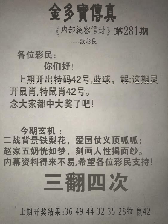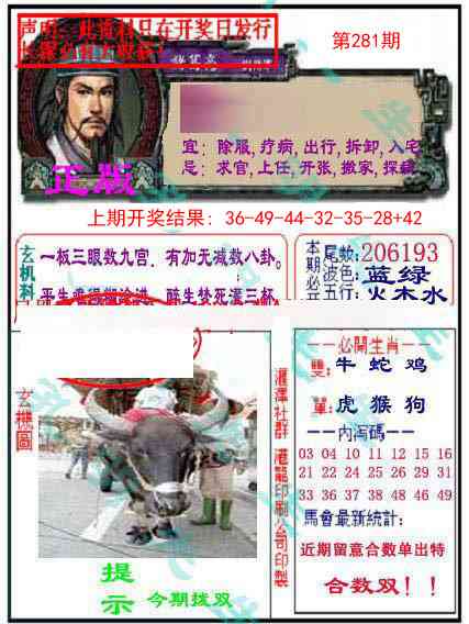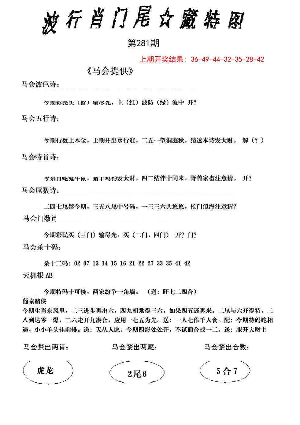 281期:三肖[马龙牛] 281期:三尾6-4-5